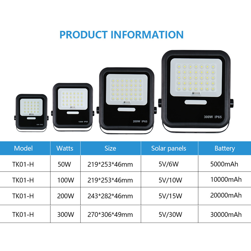 | TK01-H 300W | 3.2V 30AH | 5V/6V 30W | 6-8 giờ | ABS | SMD 2835 |